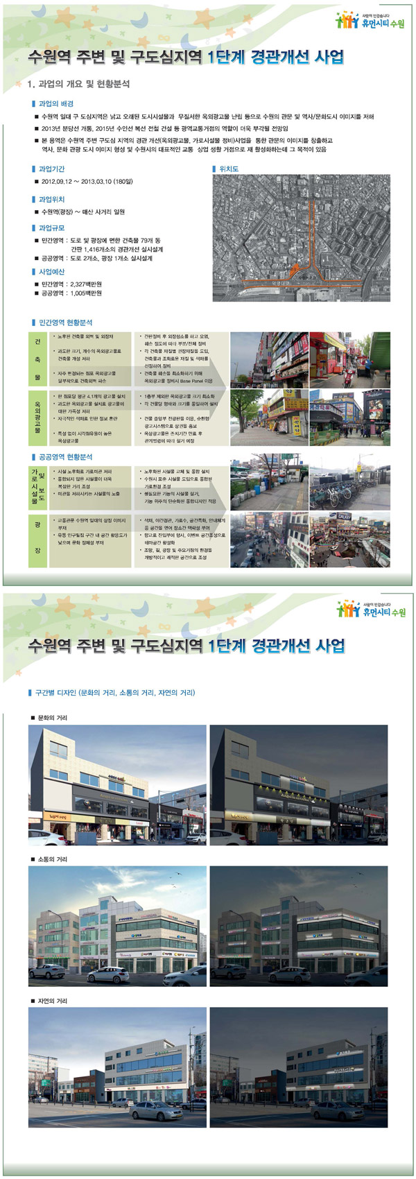 ¹ßÁÖó : ¼ö¿ø½Ã¼ö¿ø¿ª ÁÖº¯ ¹× ±¸µµ½ÉÁö¿ª1´Ü°è °æ°ü°³¼± ½Ç½Ã¼³°è¿ë¿ª [¿Á¿Ü±¤°í¹° ¹× °ÇÃàÆÄ»çµå °æ°ü°³¼±]°è¾à±â°£ : 2012. 09 ~ 2013. 03